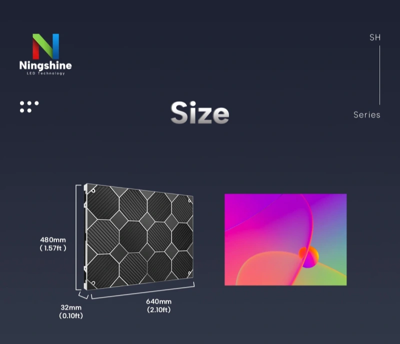 Our SH series is available in two sizes: 640*480mm(2.10*1.57ft) and 600*337.5mm(1.97*1.10ft). Moreover, customers can choose the appropriate cabinet based on the screen size.