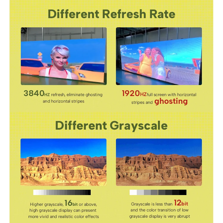 Higher grayscale, 16bit or above, high grayscale display can present more vivid and realistic color effects