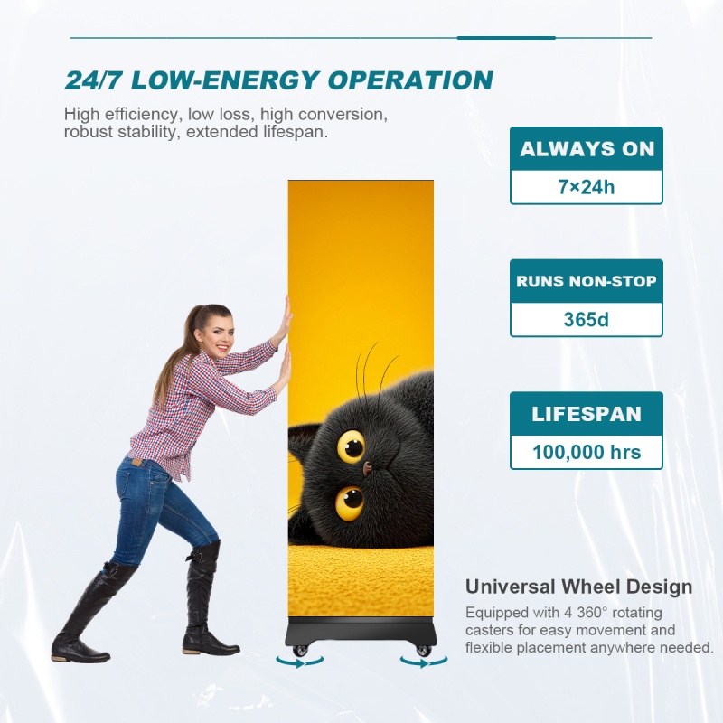 - Suitable for high-frequency mobile scenarios such as shop windows, retail stores, and trade shows.
