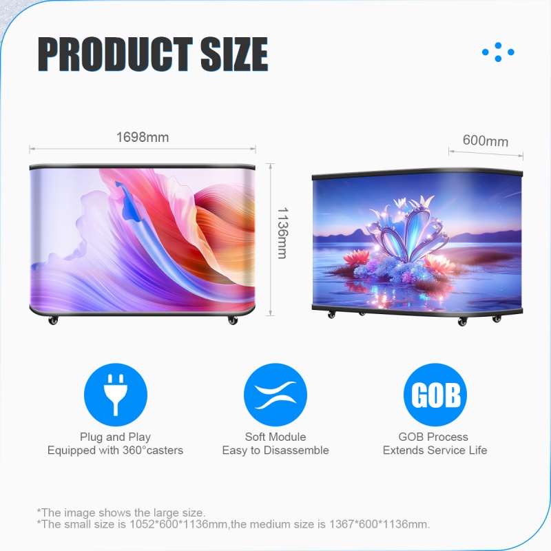 Finally, the large-size DJ booth screen measures 1698*600*1136mm and has a 3840Hz high refresh rate.