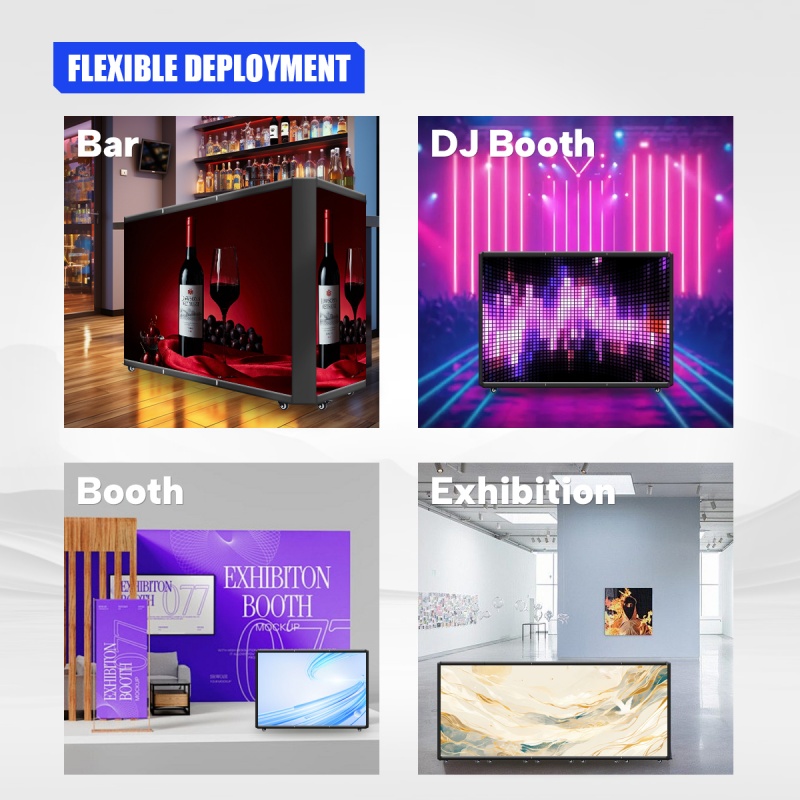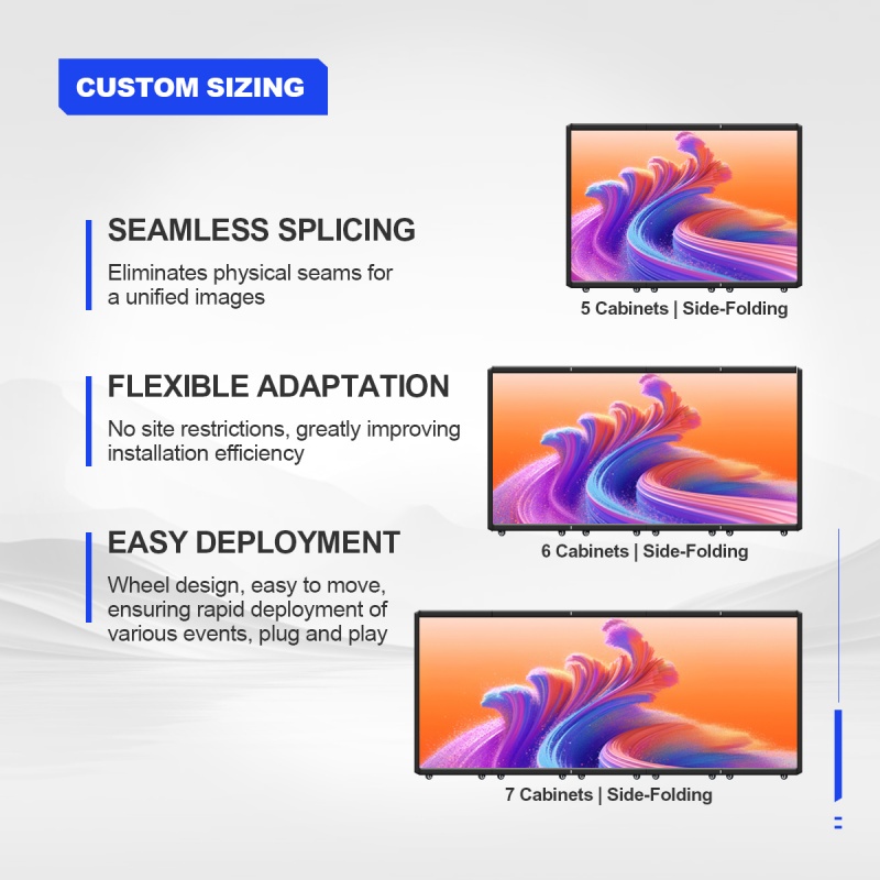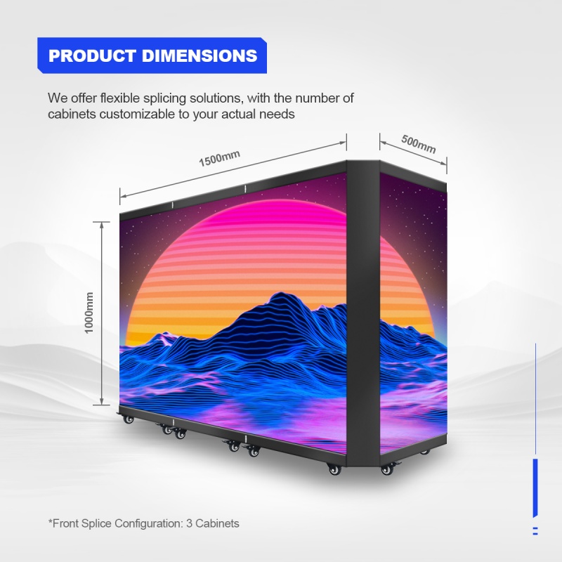 The foldable LED DJ console is made of high-strength die-cast aluminum, making it lightweight and highly flat. It also offers pixel pitch options of 1.95mm, 2.6mm, 2.97mm, 3.91mm, and 4.81mm.